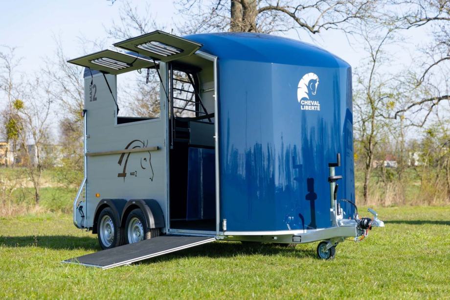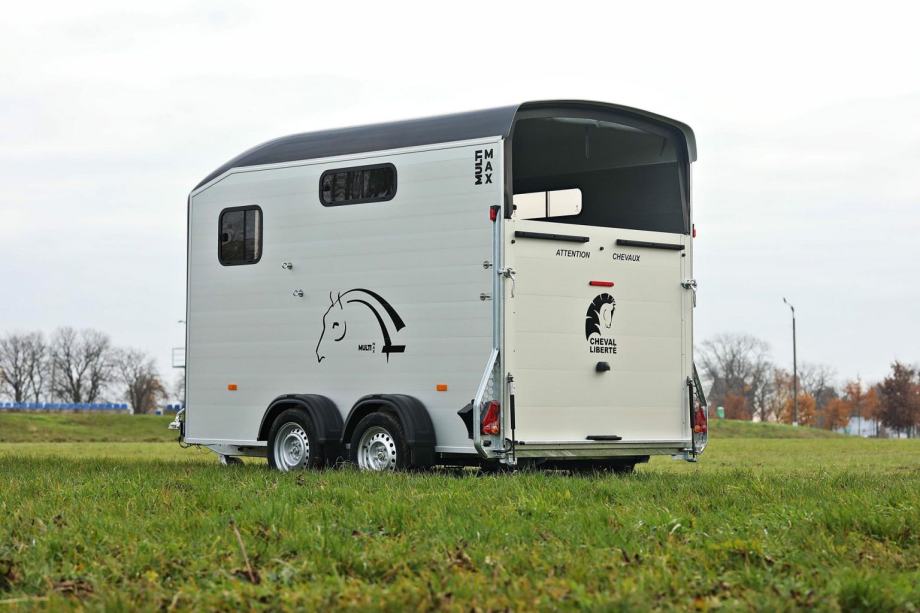U ponudi je Cheval Liberté Multimax, prikolica razvijena za prijevoz dva velika konja uz iznimno prostranu unutrašnjost i dodatne mogućnosti organizacije opreme. Opremljena naprednim Pullman 2 ovjesom, robustnim aluminijskim komponentama i velikom individualnom sedlarnicom, ovaj model pruža udobnost i sigurnost na svakom putovanju.