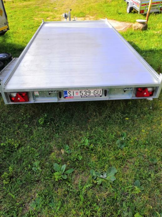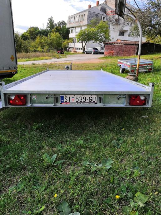 Prodajem prikolicu Anssems MSX 2700, godište 05/2019, ali navoz dužine 4,1 i širine 2,1m. Alu rampe dužine 3m, vitlo, amortizeri-100km/h. Prazna teška samo 530kg, nosivost 2170kg, ukupna masa 2700kg. Registrirana do 6-og mjeseca. Cijena 2490€.