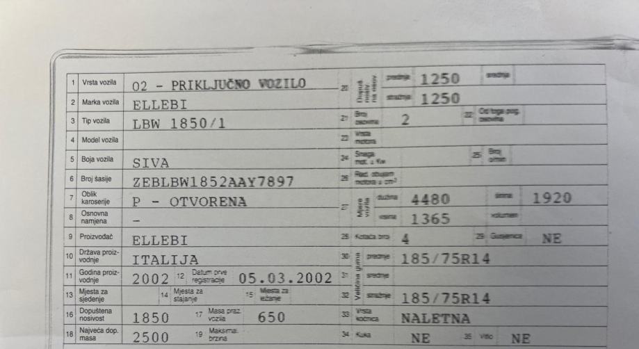 Prodajem rabljeno vozilo: ELLEBI LBW 1850/1