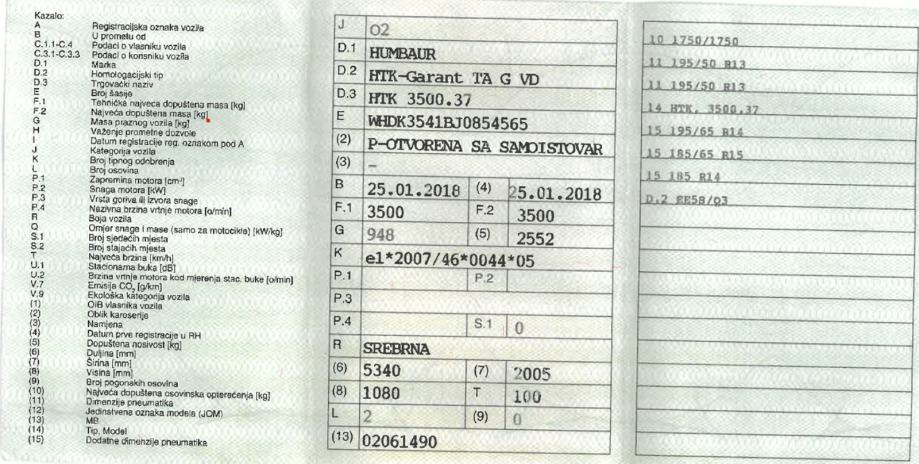 Prodajem rabljeno vozilo: HUMBAUR PRIKOLICA OTVORENA SA SAMOISTOVAROM
