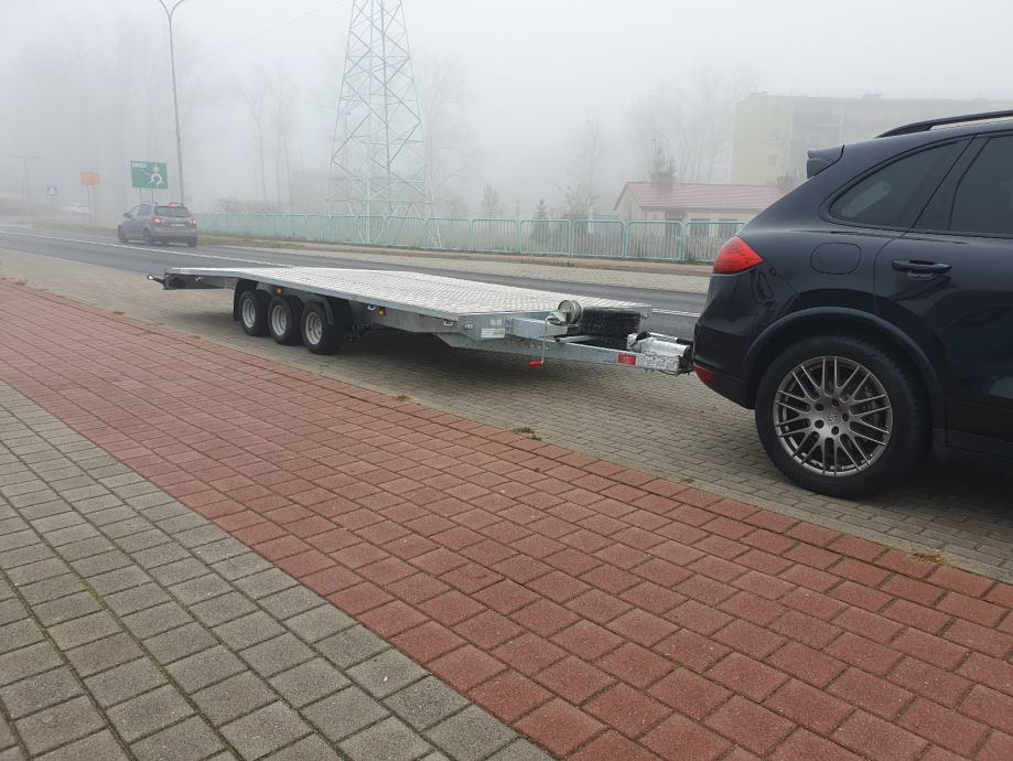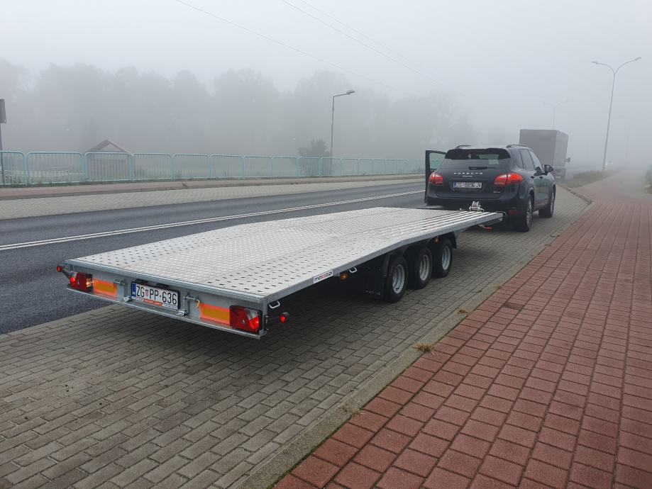 Prodajem prikolicu za prijevoz automobila Niewiadow. Prikolica ima 3 osovine sa kotačima 10". Dužina platforme 5,5 m, ukupne nosivosti 3500 kg. Stara je godinu dana, registrirana do kraja godine. U sustavu PDV-a, cijena je sa PDV-om! 099 789 8161