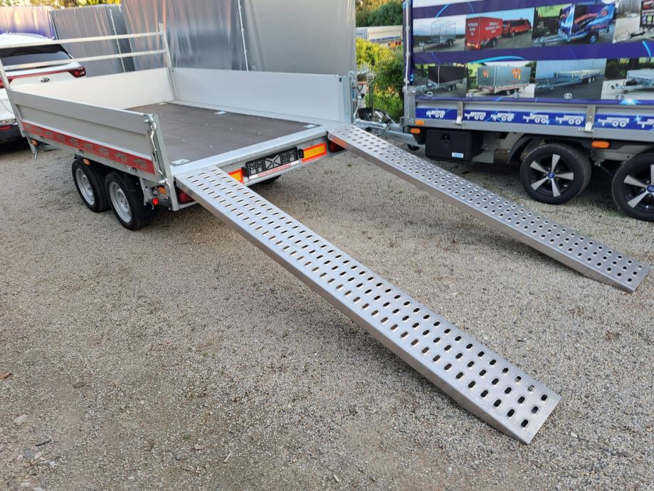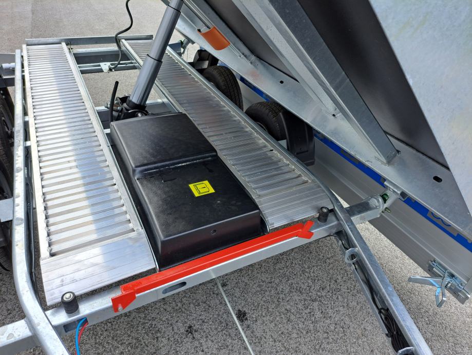 U cijenu je uračunata,prikolica,potporni kotač, navozne rampe ALU 2,5m x 2 kom. nosivosti ukupno cca 2000 kg