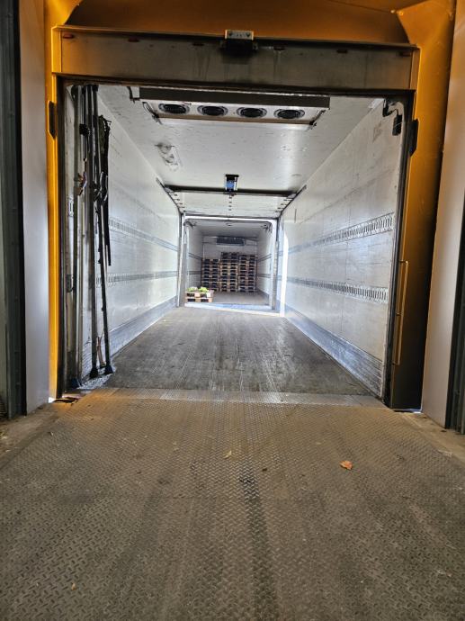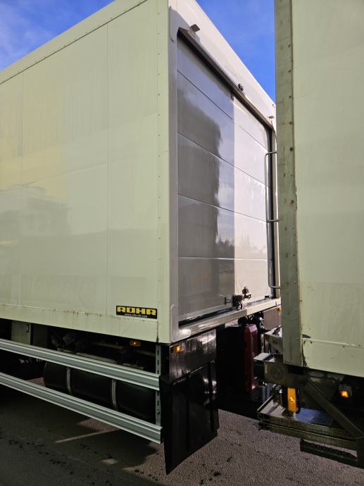 Prikolica ima prednja rolo vrata pa se moze spojit na kamion s prijelaznim limom pa nije potrebno raskopcavat prilikom utova i istovara..