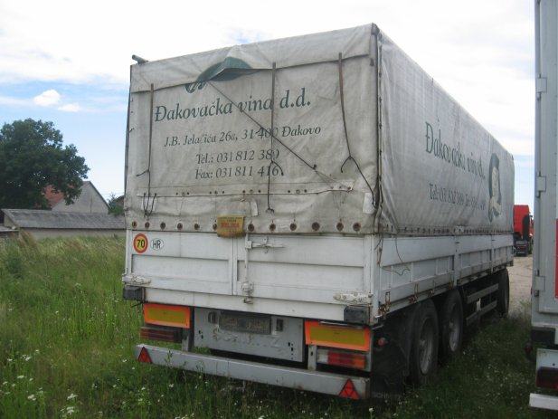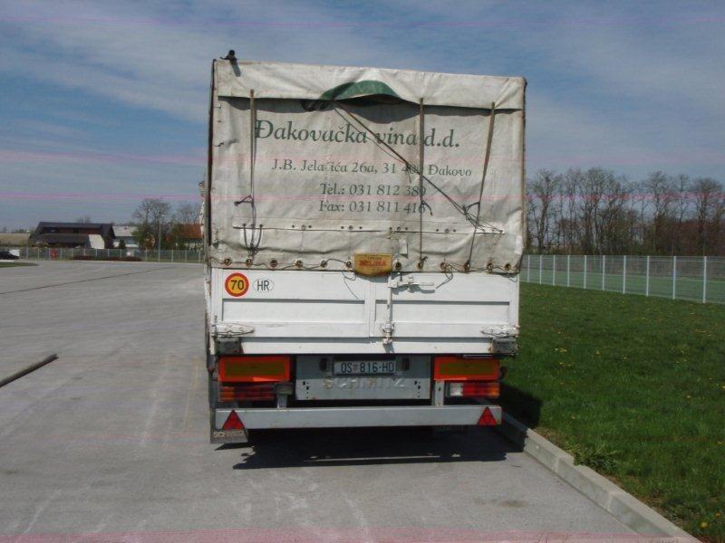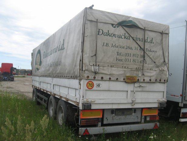 Prodajem prikolicu Schmitz, utovarni prostor 8,4 m, BPW osovine, gume cca. 30 %, šiber cerada, alu stranice 80 cm otvorene za rinfuzu.Masa praznog vozila 5400 kg, dopuštena nosivost 18600 kg, največa dopuštena masa 24000 kg. Bez zamjena. Prikolica se može vidjeti u Čakovcu radnim danom od 8-19 h.