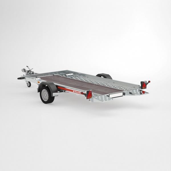 Autoprikolica Temared Car flat Model: Temared CAR FLAT 3518 U 1,8T Prikolica za prijevoz automobila s mogućnošću naginjanja lohr transportne površine. Kotači postavljeni s vanjske strane transportne površine. Posvećen malim automobilima. Mogućnost ugradnje kurble za podizanje.