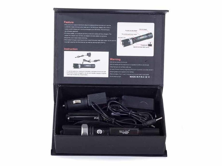 - Napajanje: punjiva baterija / 18650 3,7 V ćelija ili 3 x AAA baterije