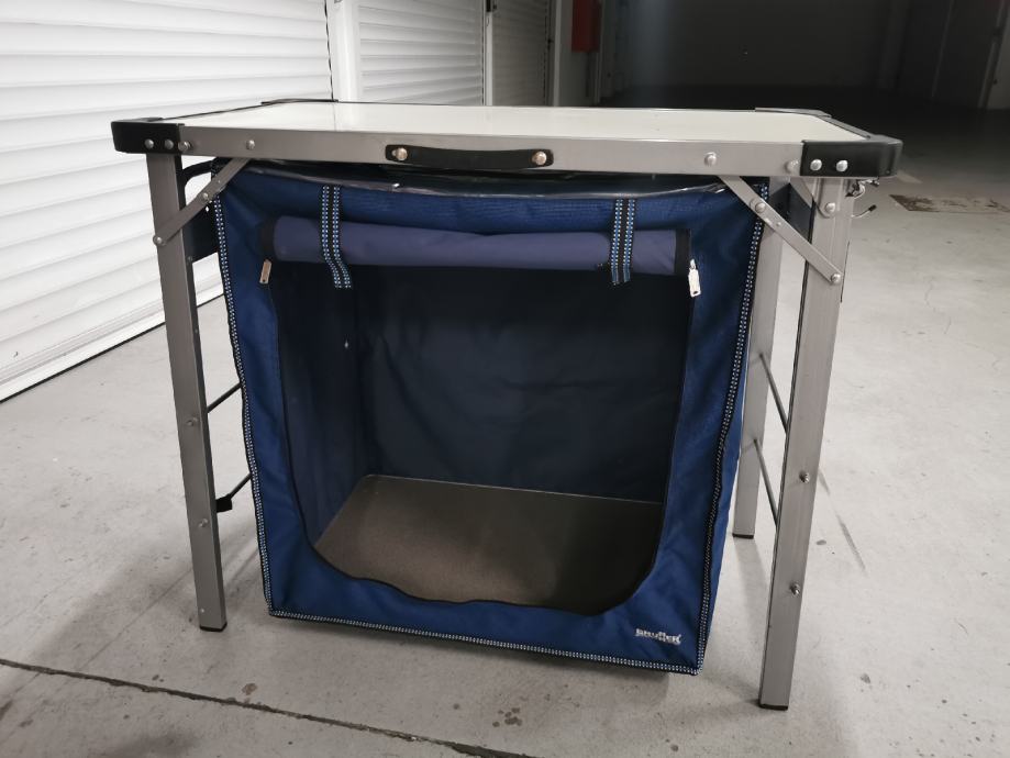 Ormarić kao na slikama za kampiranje i slobodno vrijeme. Sklopiv, ima torbu, lako prenosiv. Stanje odlično kao na slikama, postao višak.