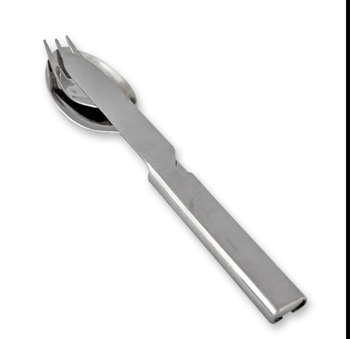 Kvalitetan pribor za jelo, vilica, žlica i nož sa otvaraćem izrađen od inoxa, poslužiti će vam na ugodnim obrocima na svježem zraku. Dostupno je više setova