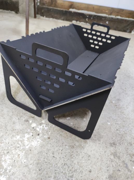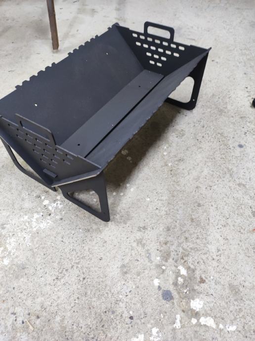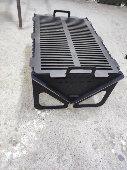 Vrlo praktičan i funkcionalan roštilj na drva i ugljen. Zbog oblika i strujanja zraka jako brzo spreman za upotrebu. Robustan ( željezo 3 mm) , ali lak za prenošenje. Površina roštilja za pečenje 460 mm X 280 mm.