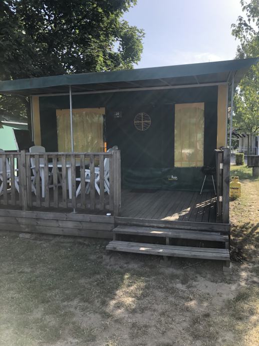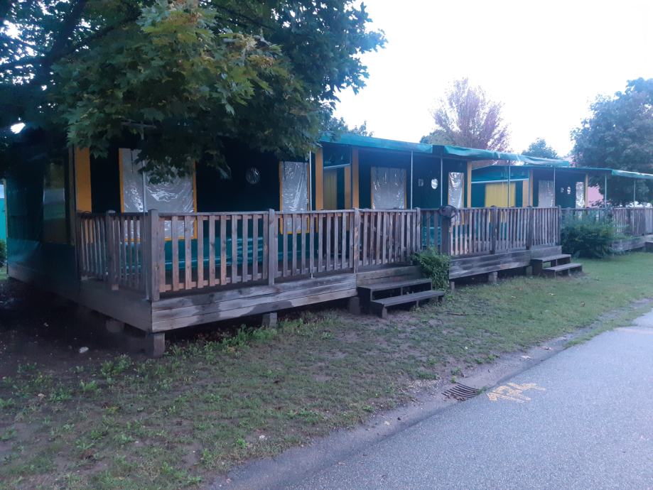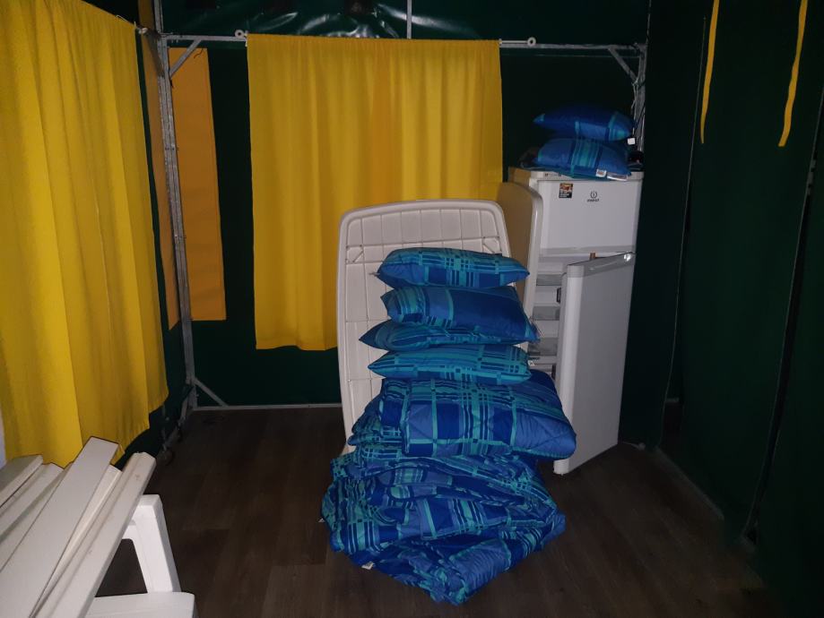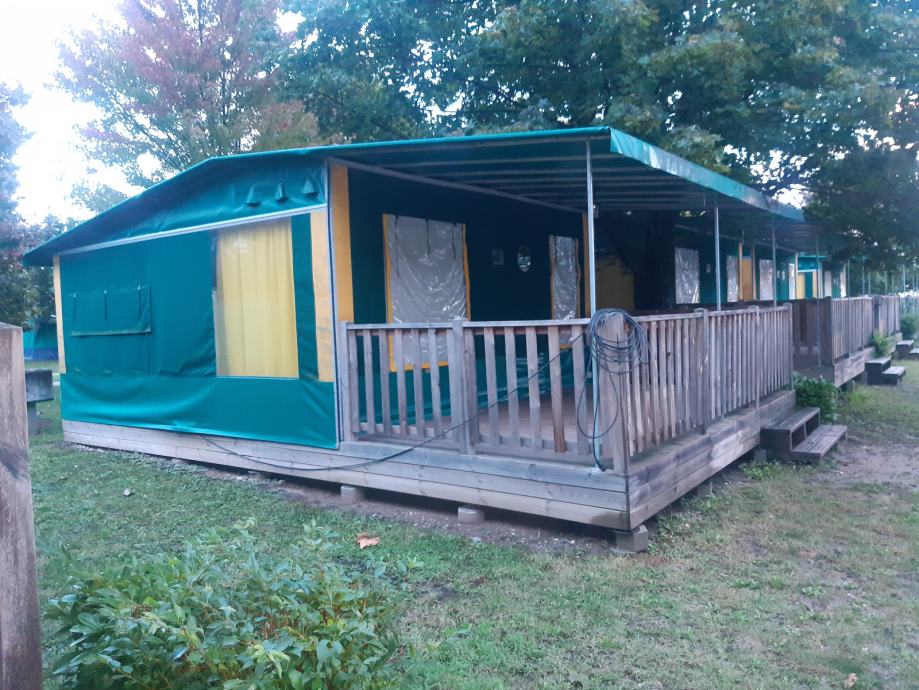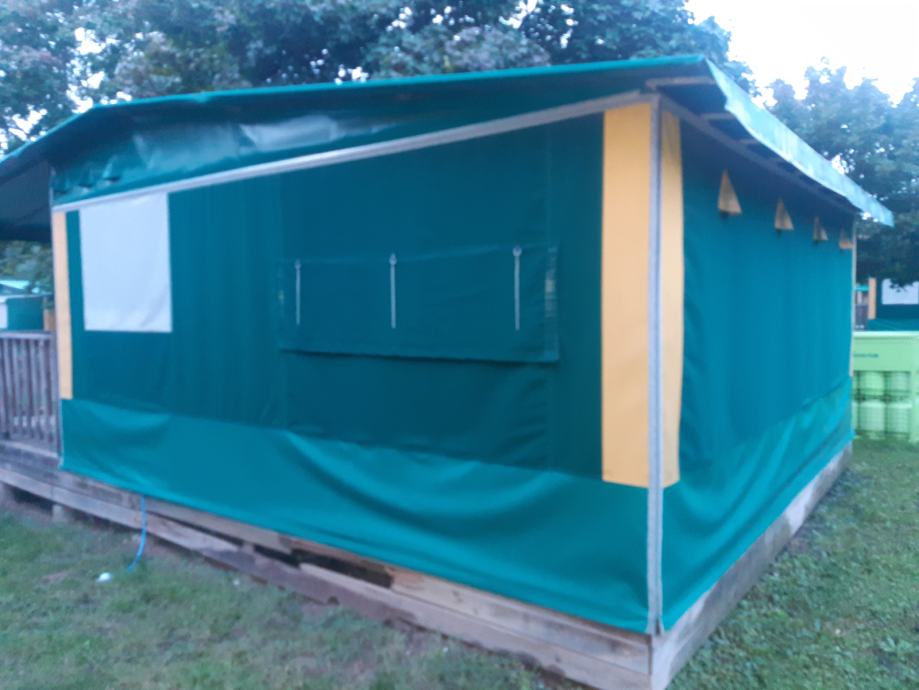 Glamping šatori korišteni 3 sezone , potpuno namješteni , 6 lezaja , wc ,kuhinja, hladnjak, stolovi i stolice , 38 kvadratnih metara, sa drvenim podestom, 11 komada dostupno! Cijena po kom