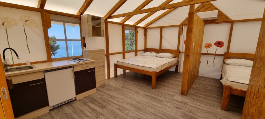 Glamping šator,dim 7,5m x 5m , 2 sobe ,kuhinja,wc,terasa.