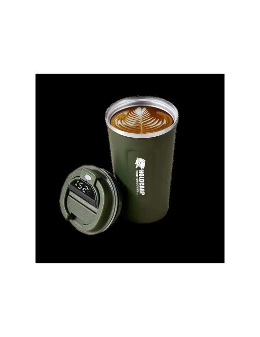 Termo šalica od nehrđajućeg čelika zapremine 510 ml, koja prikazuje temperaturu pića u njoj kada je dodirnete prstom. Unutarnji materijal nehrđajući čelik za hranu. Struktura: jezgra od nehrđajućeg čelika - mikrovalni bakreni umetak - vakuumska izolacija - vanjski sloj od nehrđajućeg čelika - troslojna visokotemperaturna obrada vanjske površine