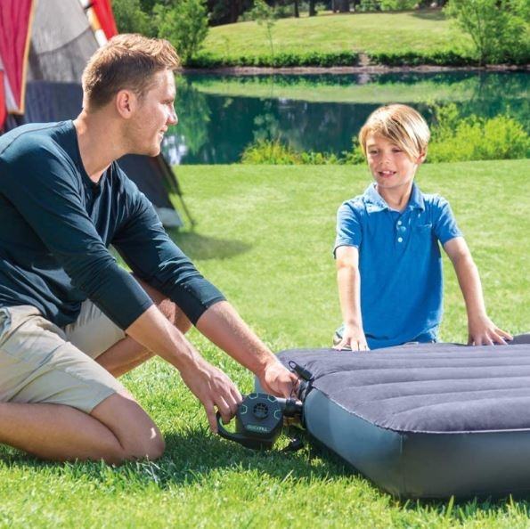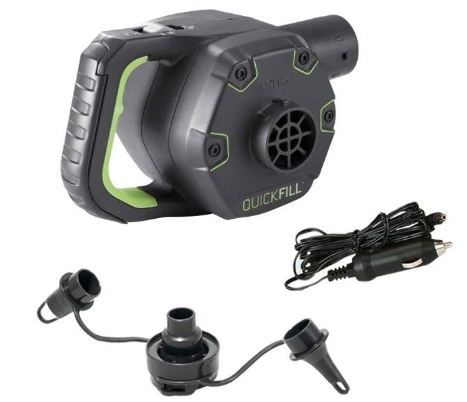 Intex električna pumpa za dom i putovanja dolazi s 3 različita priključka. Dobivate i 12V DC adapter za punjenje u automobilu. Akumulator možemo puniti i u autu.Novi ergonomski dizajnBaterija se može napuniti ako je potrebno, prikaz napunjenosti.Šifra: 66642Težina: 1,1 kgDvosmjerni rad220-240V, 12V DC