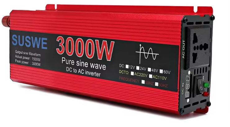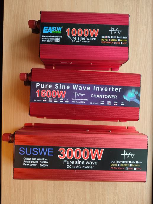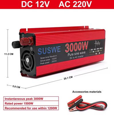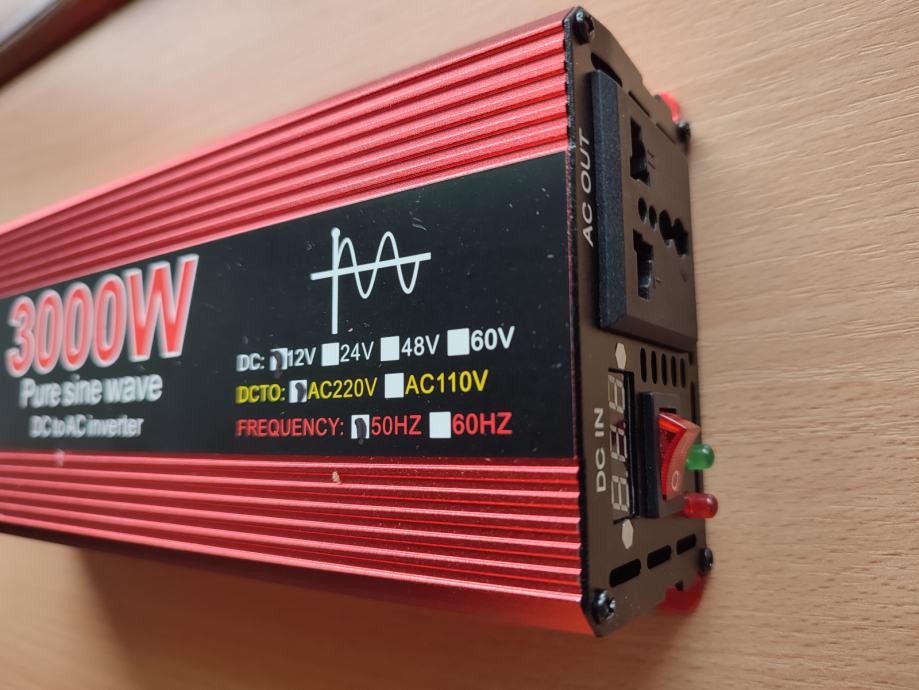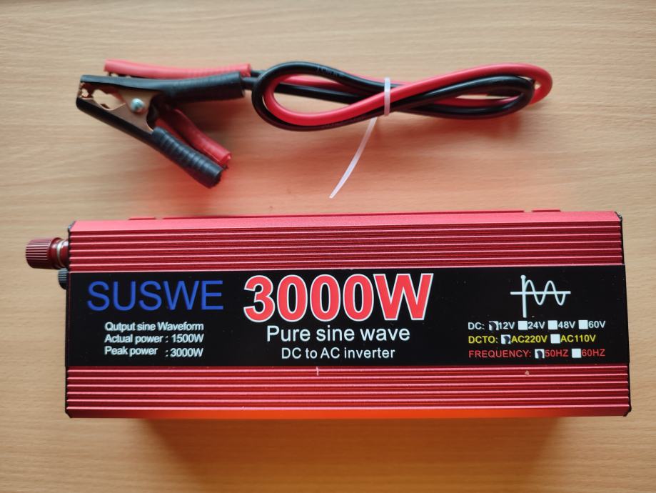 Inverter napona sa 12V na 220V, 3000W nazivne snage 1500W, sa spojnim kablovima.