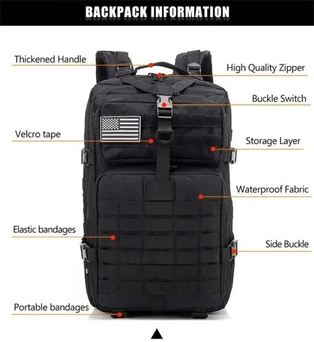 “Tactical” torba za planinarenje velikog volumena, vodootporna