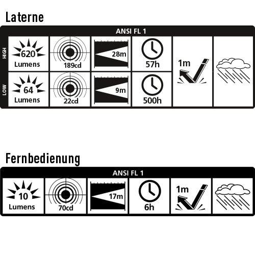 Remote control with additional flashlight function: 1 NICHIA diameter 5 mm LED, switchable for continuous or strobe lighting.