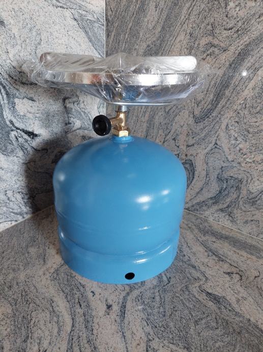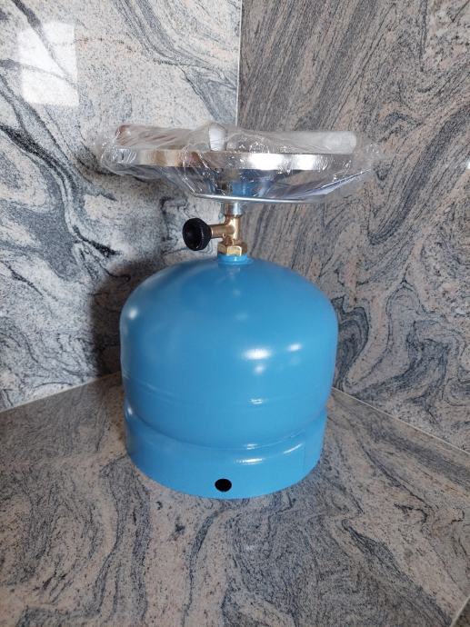 Prodajem malu plinsku bocu od 2kg(5L) puna plina,sa novim kromiranim Euro camping kuhalolom! Cijena 50€