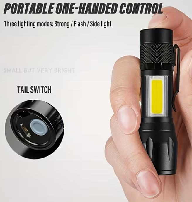 Praktična i snažna LED svjetiljka idealna za vanjsku upotrebu, kampiranje ili traženje. Opremljena XPE visokojasnim LED diodama i COB bočnim osvjetljenjem velike jačine. Pruža više načina rasvjete i mogućnost rastezljivog zooma.