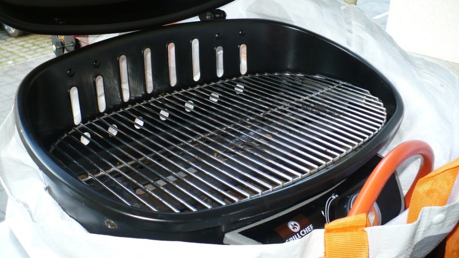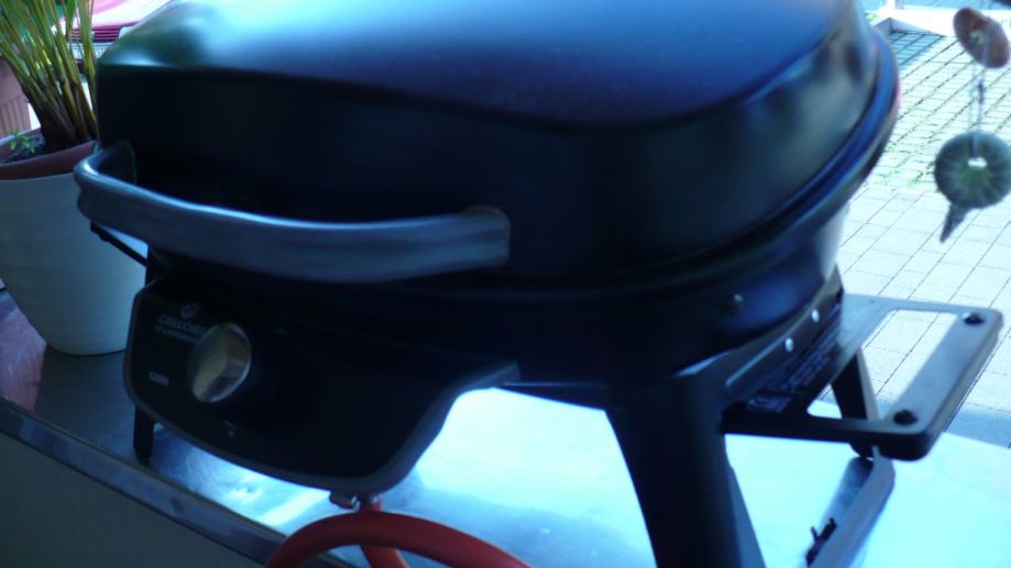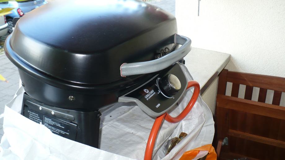 Plinski, na kartuže (uz adapter) ili boce, s reduktorom tlaka, piezzo upaljač. Dimenzije oko 50x34x39, površina roštilja 46x27. Savršeno za male balkone i terase. Odlično za kampiranje i slično...