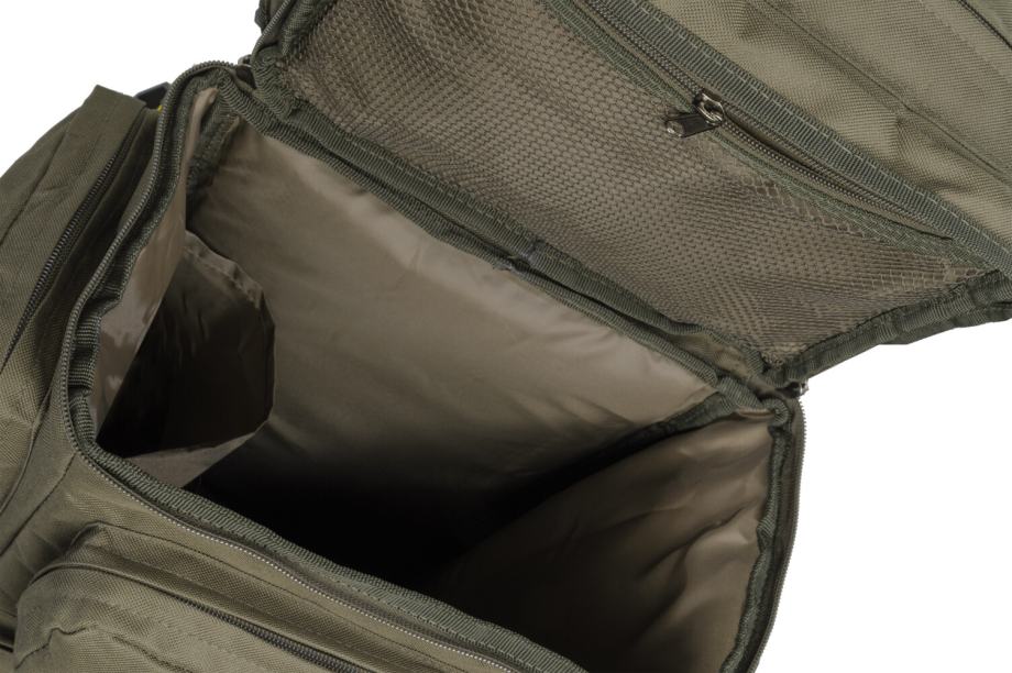 Ruksak nudi vrhunske materijale, komponente i izradu po iznimno pristupačnoj cijeni. Opremljen je udobnim, anatomski oblikovanim podstavljenim naramenicama, uključujući podesivu kopču na prsima i čvrstu ručku za nošenje u ruci. Materijal ruksaka je potpuno vodootporan i periv. Osim toga, dno je ojačano i ojačano. Glavni odjeljak ima unutarnji džep za bolju organizaciju tereta. Veliki bočni džepovi s dodatnim petljama za kolce i ostali pribor nalaze se na bočnim stranama ruksaka. Dodatni džepovi nalaze se na poklopcu i prednjoj strani ruksaka. Svi džepovi opremljeni su jakim patentnim zatvaračima i dvostrukim Mivardi ručicama za patentni zatvarač za vrlo jednostavan pristup.