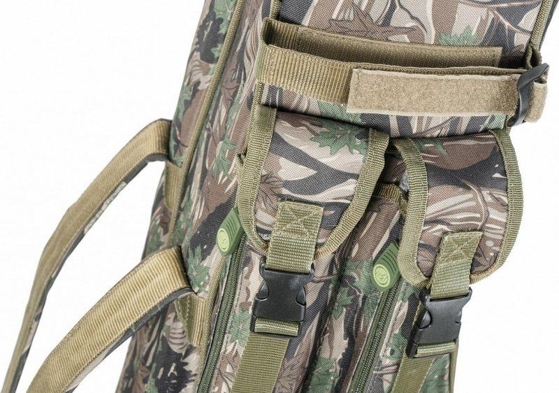 Torba za ribolovne štapove MIVARDI Multi Camo (M-RHM110C) dužina 110 cm, kamuflažno platno, 3 komforna pretinca za štapove s rolom, 2 duga bočna pretinca za podmetač/kišobran, 2 bočna pretinca za sitnice, potpuno nepromočivo platno, naramenice i ručke za nošenje torbe.