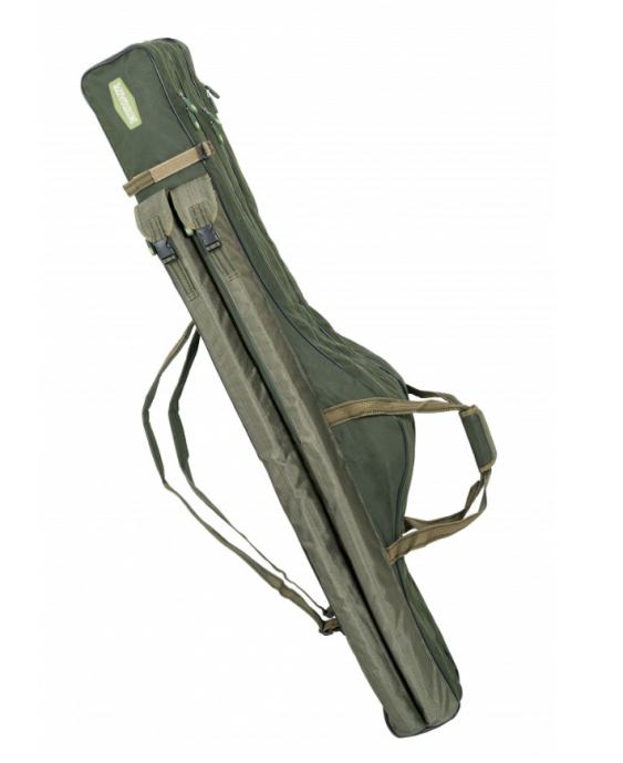 Držač šipke s tri odjeljka u različitim dužinama. Pogodan je za transport svih vrsta štapova za ribolov kao što su teleskopske šipke, šipke za hranjenje ili šarani za šarane s 2/3 dijela. Izrađena je od izuzetno otpornog i 100% vodootpornog materijala B-POL635D i opremljena je korisnim džepovima i teškim plastičnim bravama i kopčama. Vrhunski patentni zatvarači koriste ekskluzivne Mivardi izvlačače. Duljina - 145 cm. Boja - zelena.