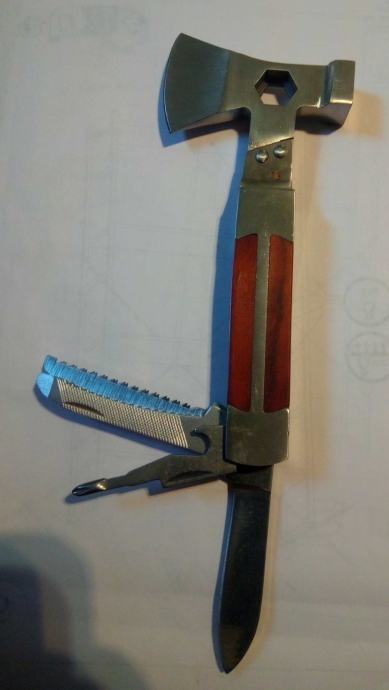 sjekira, odvijač, pila, turpija, čekič, otvarač konzerve