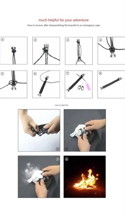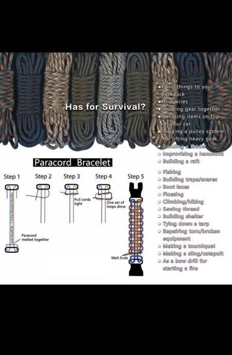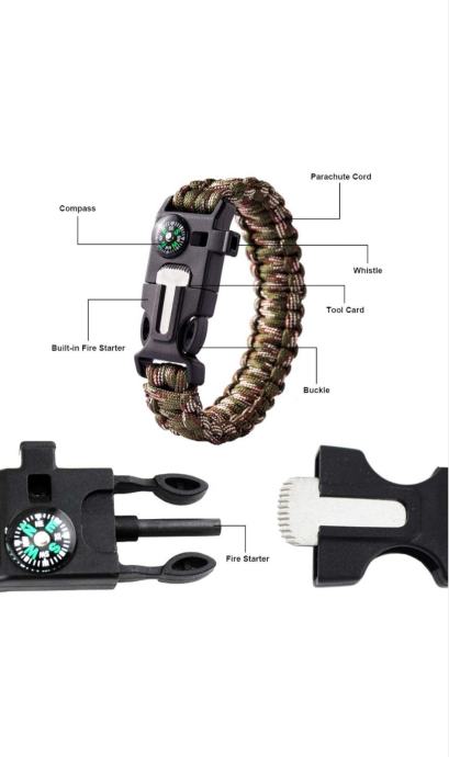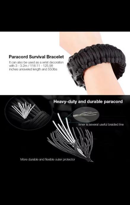 Multifunkcionalna narukvica za preživljavanje sačinjena od visokokvalitetne parakord užadi.