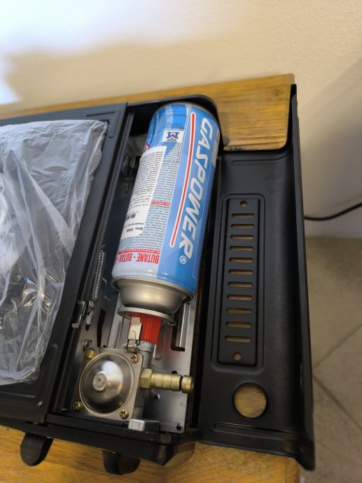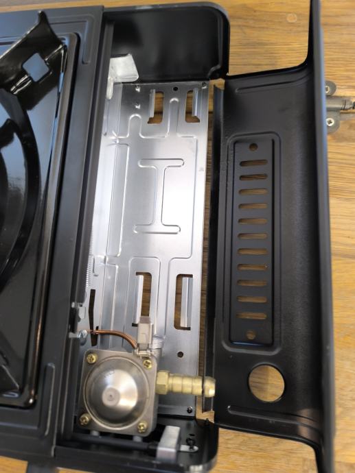 Potpuno opremljen. Efikasan plamenik visoke kvalitete. Plamenik od slitine. Posuda za kapanje sa lakim održavanjem. Emajlirano. Automatsko paljenje. Ekonomična uporaba sa plinskom bocom ili plinskim punjenjem (plinska boca ne dolazi uz proizvod ALI KARTUŠA DA). Namijenjeno za posuđe za kuhanje maksimalnog promjera 20 cm.