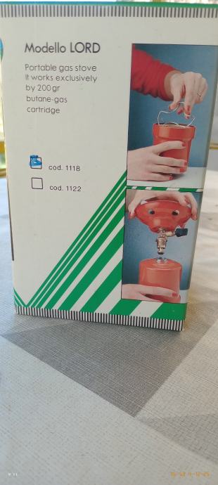 Plinsko kuhalo na kartuše, pogodno za kampiranje. Proizvedeno u Italiji, nekorištenja.