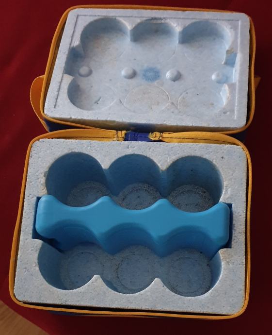Prenosni hladnjak s umetkom za hlađenje za 6 limenki zapremine 0,33 l. Nekorišten.