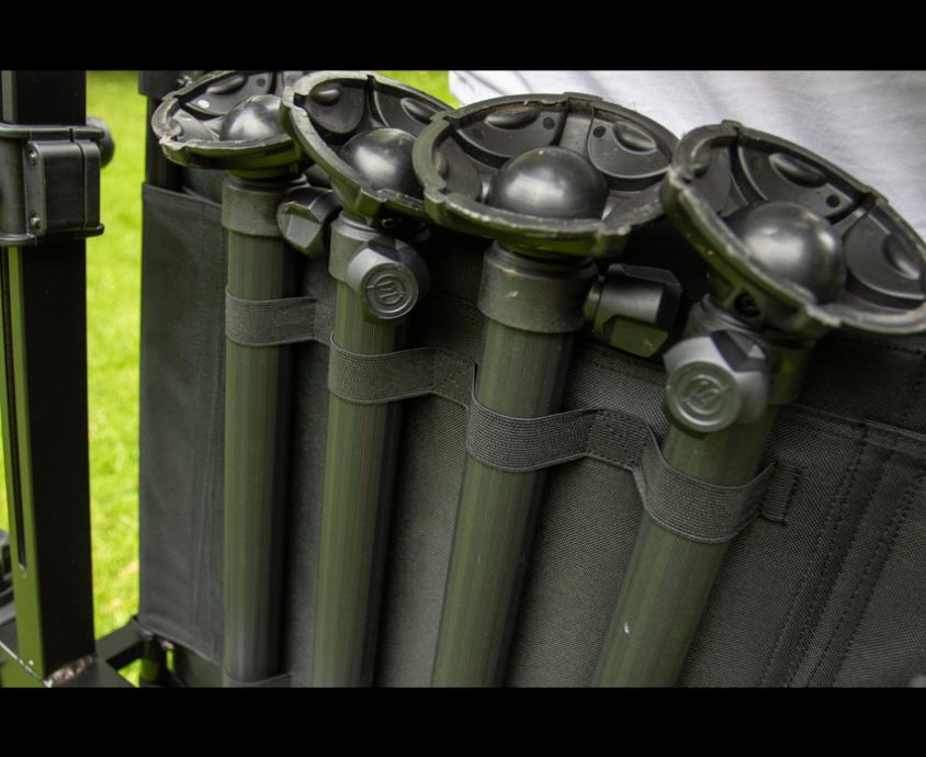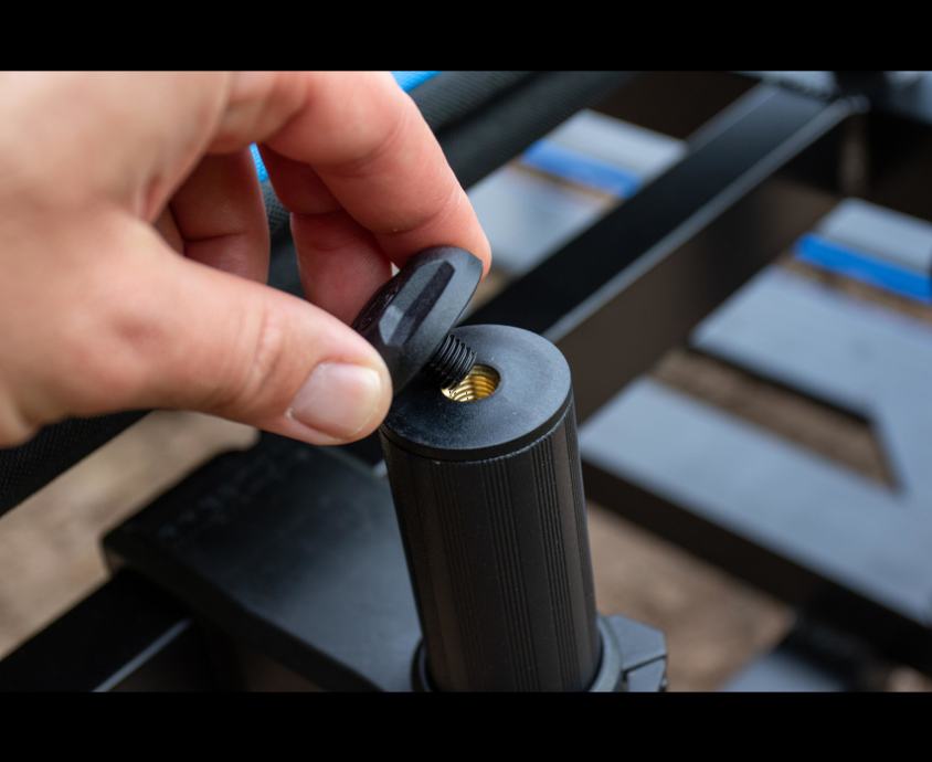 Ovaj nadograđeni model sada ima centralno postavljen klizni uspravni nosač od 36 mm, što pričvršćivanje pribora i bočnih ladica čini učinkovitijim i jednostavnijim za korištenje. Stabilnost je dodatno poboljšana s četiri teleskopske noge od 36 mm, osiguravajući da stolica ostane sigurna i ravna na bilo kojem terenu.