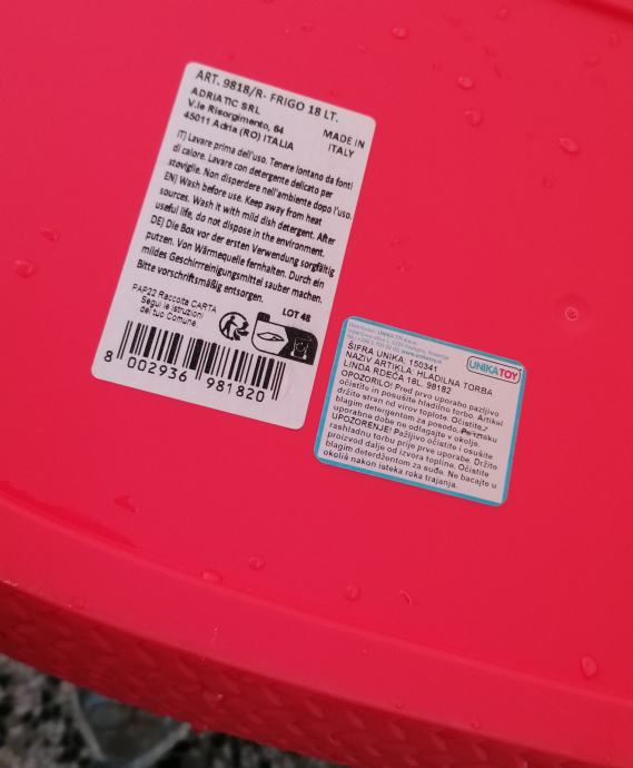 Novi nekorišten crveni hladnjak, 22 litre.
