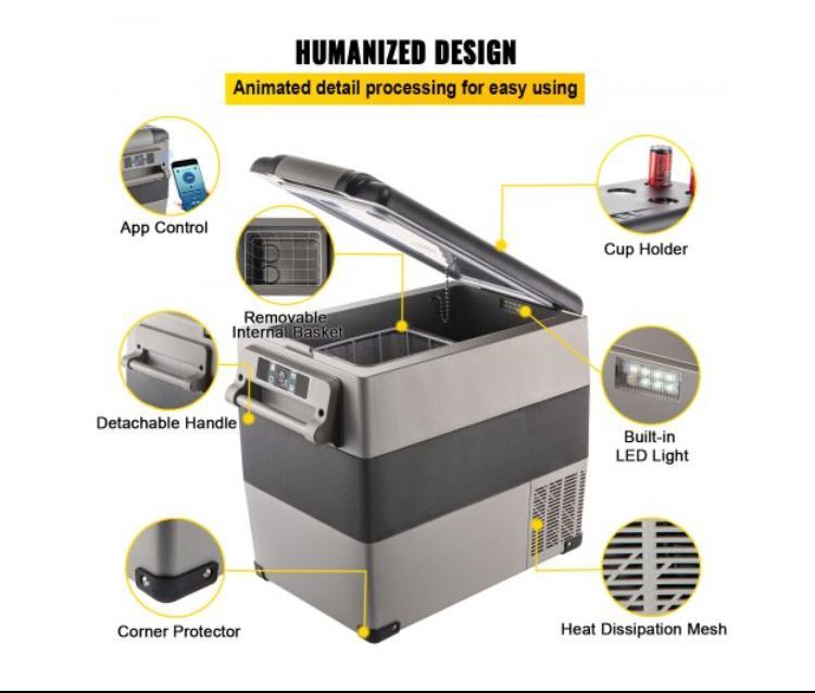 Hladnjak malih dimenzija udobno staje u vaš prtljažnik, iza sjedala automobila ili u krevet kamiona. Kompresorski hladnjak od 12 V možete ponijeti sa sobom na bilo koju aktivnost na otvorenom bez brige o neravnim cestama ili padinama. Hladnjak za putovanja automobilom savršen je za kampere, kampove, čamce, kampiranje, pecanje, izlete i aktivnosti na otvorenom.