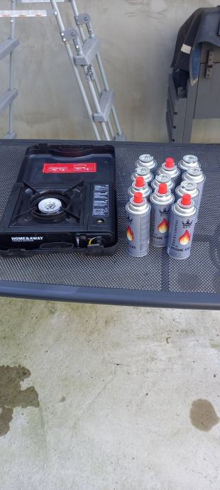 Plinsko kuhalo i 12 sprej kartuša. Pogodno za kamion, kampiranje i sl.