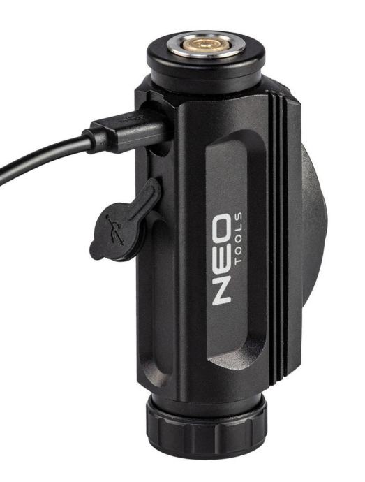 Punjiva naglavna LED svjetiljka 1000 Lm 10 W NEO 99-028 ima domet 200 m. Uz svjetiljku dolazi i baterija 2000 mah 3.7 Li-ion i USB punjač. Vrsta svjetlosti je LED CREE L2. Klasa zaštite je IP20. Svjetiljka ima 6 funkcija svjetla: 100%, 70%, 45%, 12% blinkanje (stroboskop), SOS svjetlo + dodatno crveno i plavo svjetlo. Vrijeme punjenja svjetiljke je 5h, dok je max. radno vrijeme 6h (12% jačina svjetlosti). Svjetiljka se isporučuje s trakom za glavu, a pomoću kopče se može lako staviti i skinuti, te koristiti samostalno kao ručna svjetiljka.