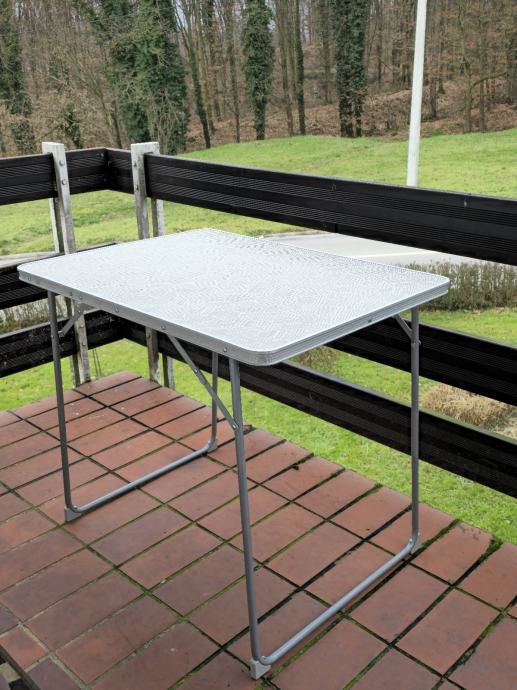 Prodajem malo korišteni rasklopni stol za kampiranje,dimenzije ploče 80x60 visina 70 cm. Šaljem nakon uplate na račun,slanje u cijeni!