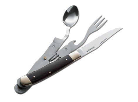 Magnum Bon Appetite je kompletan i kompaktan set za jelo idealan za kampiranja, planinarenja ili za brzi obrok u pokretu. Nož, vilica i žlica su napravljeni od nehrđajućeg čelika 440, a inovativan mehanizam zaključavanja vam omogućuje korištenje svakog komada u setu zasebno. Crna drvena drška dodaje dimenziju klasičnog izgleda ovom izvrsnom Magnumovom setu za jelo.