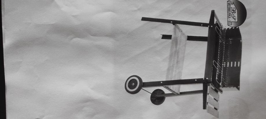 Novo. Zapakirano. Nikad korišten roštilj na kotačima sa policom. Boja crna. Materijal inox, drvene pomoćne površine. Dimenzije: 83,5×41×86. Visina pečenja na 5 razina. Dimenzije rešetke za pečenje 48×28,5. Težina roštilja 7 kg.