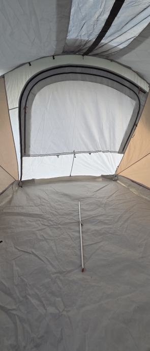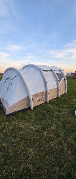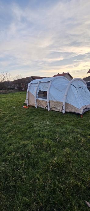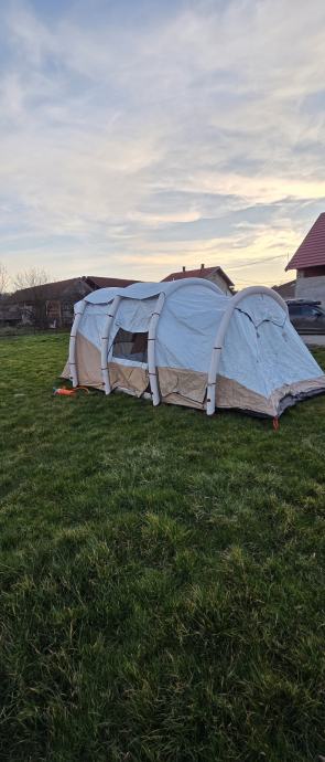 Prodat ću šator za 6 osoba s prostorijom za odmor. Korišten tri puta, potpuno opremljen, s pumpom.