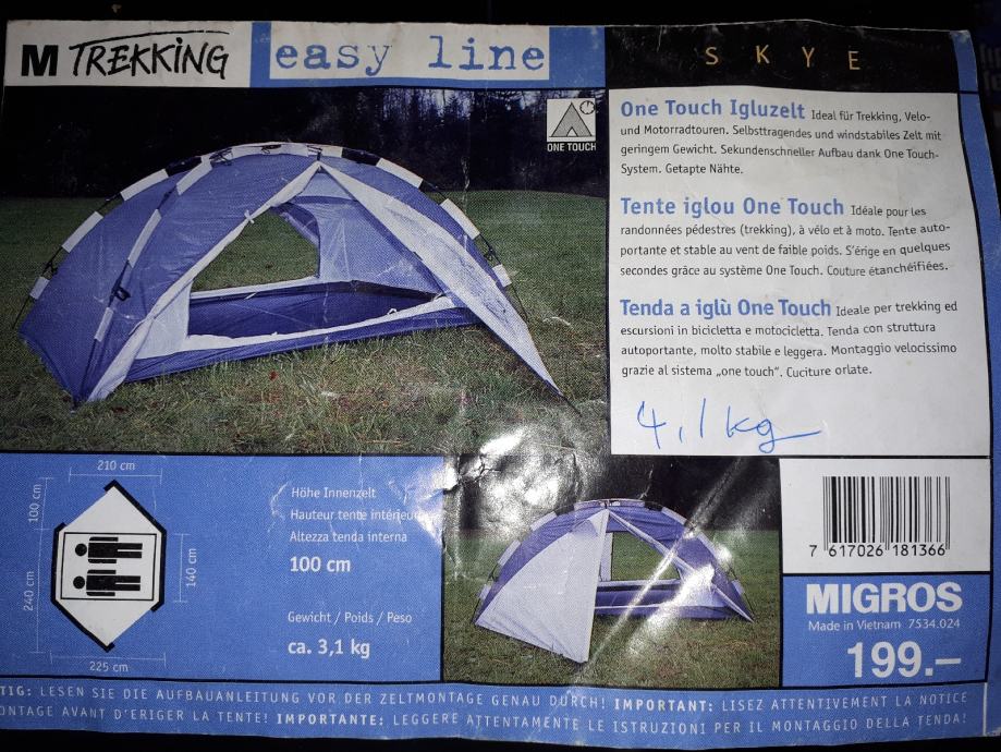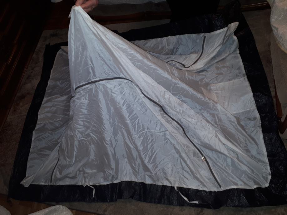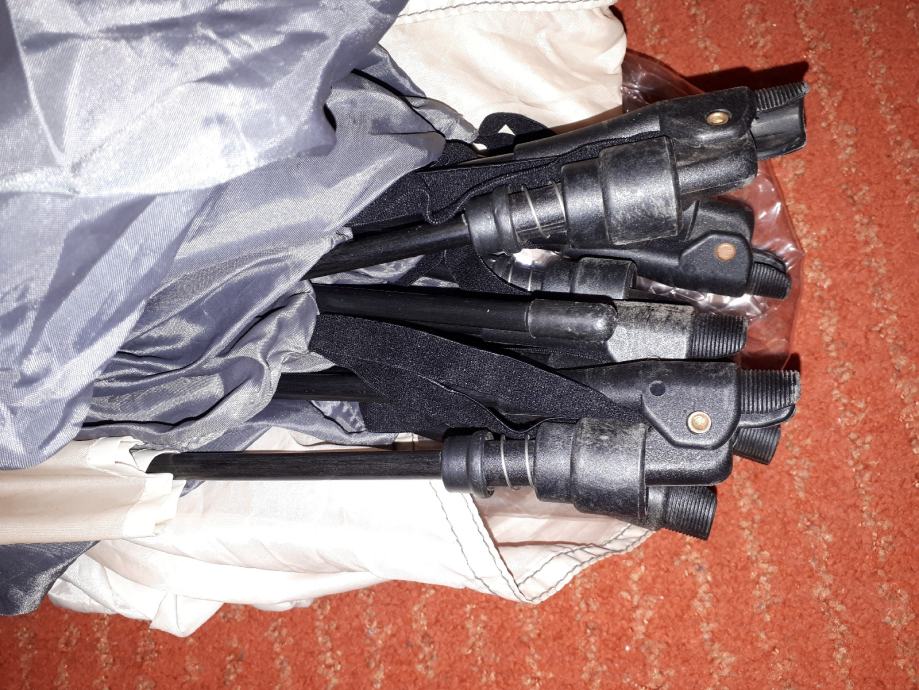 Kupljen u CH za 199 chf,korišten 2x2 dana,čist uredan i očuvan.Vanjski plašt je sa ušivenim zglobnim šipkama koje se trenutno rasklope