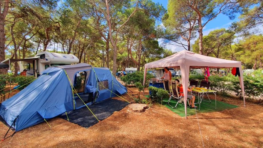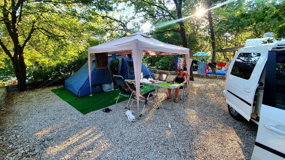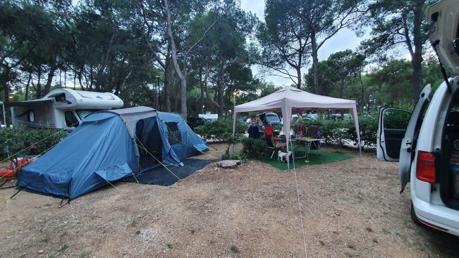 Šator kupljen u Lidlu, korišten dva puta (ljeto 2021) na dvije lokacije (slike), bez ikakvih oštećenja. Sastoji se od dva odvojiva spavaća odjeljka i pred prostora između. U spavaćim odjeljcima moguće je smjestiti madrac širine 140x200 cm. Izuzetno puno otvora za prozračivanje i zaštitnih mrežica što omogućava vrlo ugodan boravak te dodatnih džepova. Jednostavno postavljanje. Čvrsta konstrukcija. Preporučam kupovinu jačih klinova jer originalni su slabi.