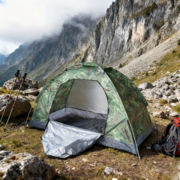 Šator za kampiranje za 1-2 osobe, brzo se sklapa i lako se postavlja, pruža ventilaciju i zaštitu od sunca, pogodan za kampiranje na otvorenom i aktivnosti u slobodno vrijeme
