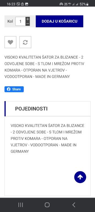 Veći šator za kampiranje,lov,ribolov,boravak u prirodi.