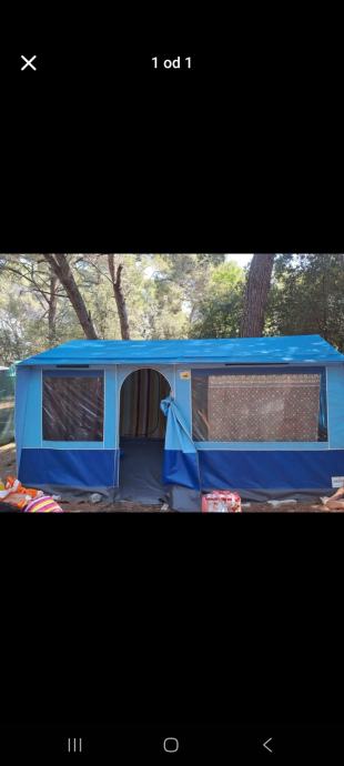 Čvrst i pouzdan šator. Dimenzije cca 4×5m. Stajača visina...koristio se u kampu. Moguca kupnja i dva kreveta za njega..zeljezna s podnicama i madracom.