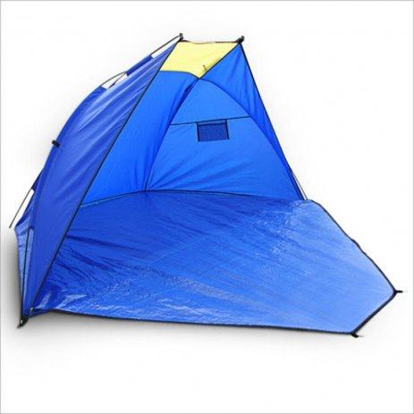 Ovaj šator sa svojim dimenzijama 250 x 120 x 120 cm pouzdano vas štiti od vjetra i opasnih UV zraka i odlična je zamjena za suncobran. Sklopivi i produženi pod šatora daje Vam i prostor za ležanje i može također poslužiti i kao vrata šatora. Znači potpuno se možete zatvoriti, presvuči, nahraniti bebu ili zaštititi od naleta vjetra koji nosi pijesak.