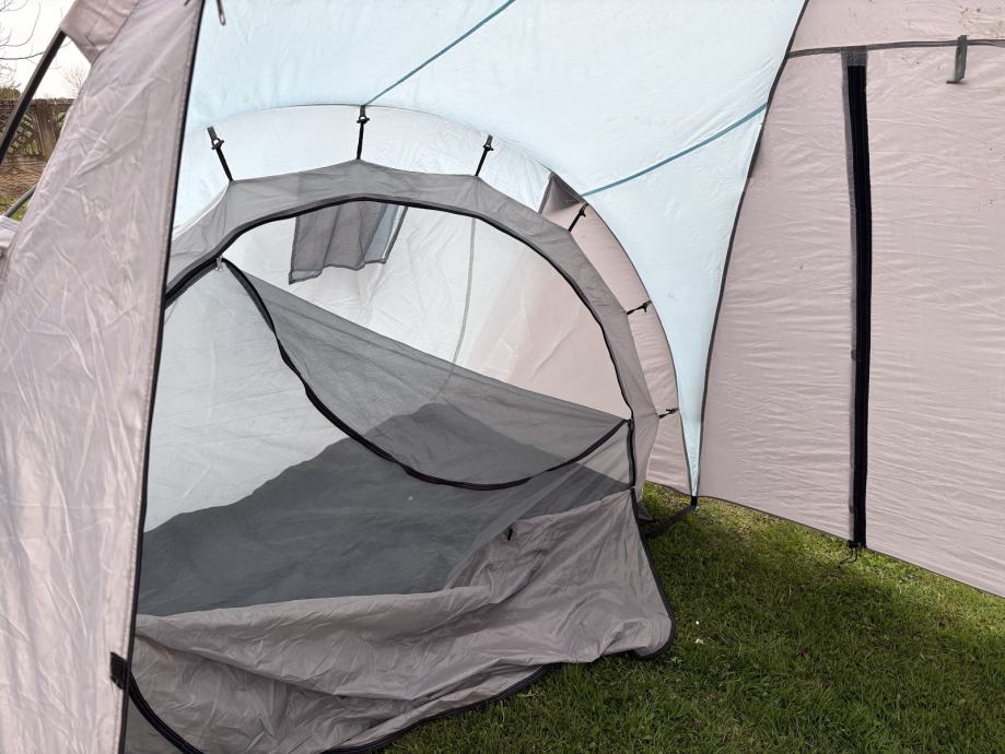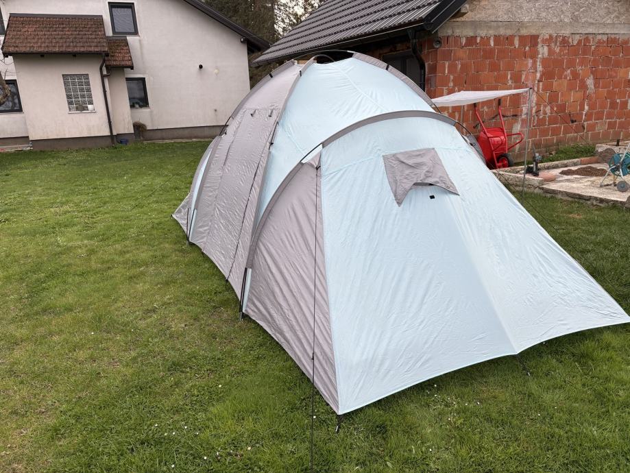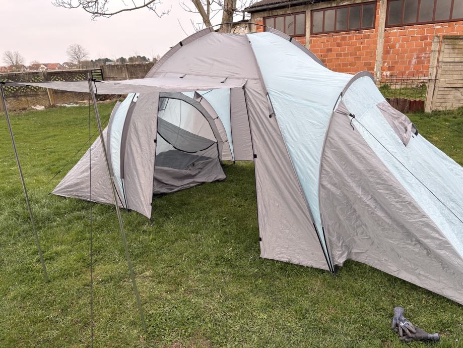 Veliki šator za 8 osoba sa dvije odvojene prostorije i predsobljem. Korišten desetak puta. Prodajem.