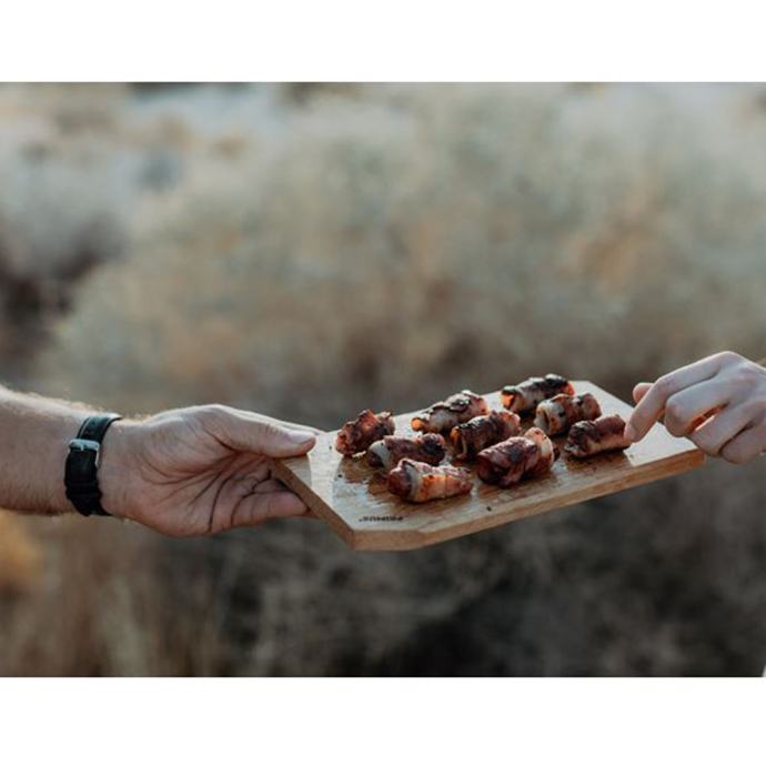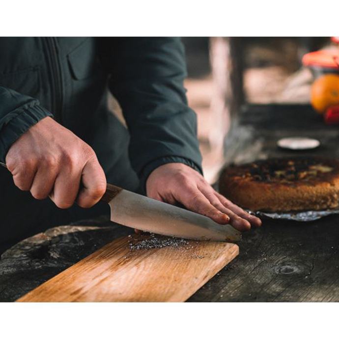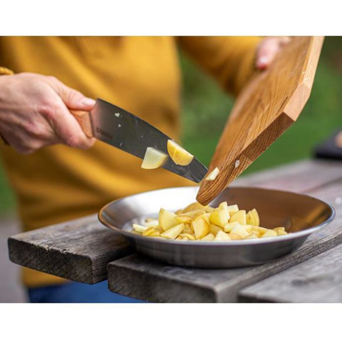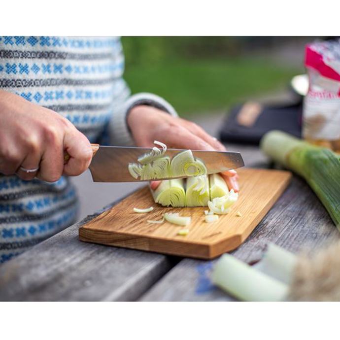 Izredno priročen set za pripravo hrane na potovanju, med kampiranjem ali na izletu. Deska iz močnega hrastovega lesa in nož z rezilom iz nerjavečega jekla sta odličen pripomoček za pripravljanje slastnih jedi.