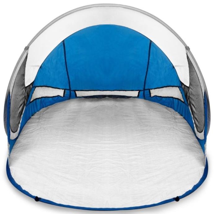 Šator za plažu s UV zaštitom 40. Šator se sam postavlja zahvaljujući automatskom otvaranju. Mrežasti materijal omogućuje ventilaciju. Odmorite se od sunca.Klinovi za ugradnjuDizajn koji omogućuje automatsko otvaranje i preklapanjeVeličina: 195 x 100 x 85 cmMaterijal: 190T poliesterDno: PE, 110g / m2, vodonepropusnoOkvir: staklena vlakna 5mm2 unutarnja džepaTorbica, promjer 63 cmTežina: 0,9 kg
