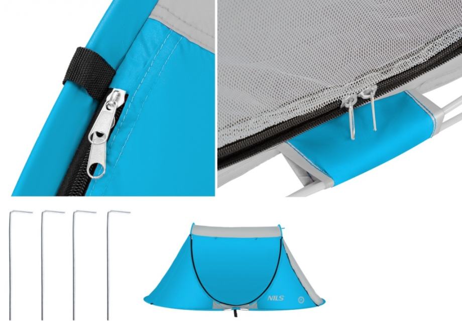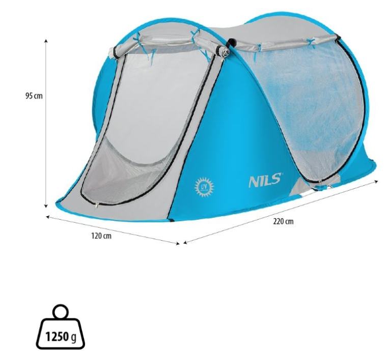 Novi model suncobrana za plažu sa UV zaštitom velikih dimenzija 220 x 120 cm. Sjenilo je izrađeno od najkvalitetnijih materijala. Pod je vodootporan pa mokri pijesak neće biti problem. Šator ima ventilacijsku mrežicu, zahvaljujući kojoj postoji stalan protok zraka unutra. Šator također ima premaz koji štiti od UV zraka.SPF zaštita: 30Dodatna mrežica na prozorimaPop-up sjeniloTorba uključena3 prozora na otvaranjeKlinovi za pričvršćivanje u zemljuMaterijal: 190T poliester s UV premazom 30spfDuljina (cm): 220Širina (cm): 120Visina (cm): 95Sklopljeno: 5 x 68 cmOkvir: Fiberglass dia. 5 mmPod: PE, vodootporan 2000 mmTežina: 1,25 kgAtraktivna plava boja